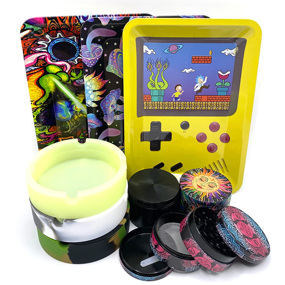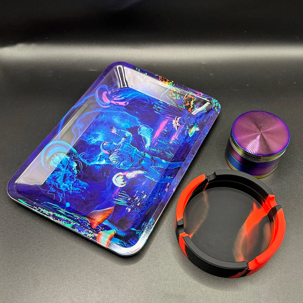 50 mm Tabak- & Kräutergrinder Set mit Rolling Tray & Aschenbecher